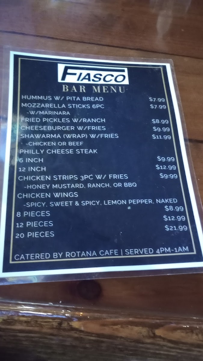Experience great vibes, cold drinks, and a menu that keeps customers coming back for more at Fiasco!